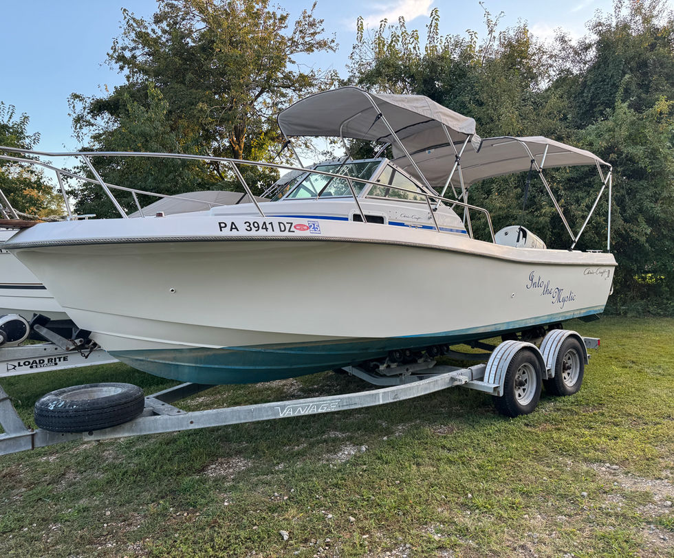 The boat comes with Garmin GPSMAP 498 Chart Plotter, Garmin 160C Fish Finder and Transducer, AM/FM Sterio with Bimini and Cockpit Bimini canvas covers, rod holders, Teail Swim Step with ladder, Anchor with bow pulpit, cabin with vinyl seat cushions convert to bed, cockpit lights navigation lights, opening port lights, rod storage, self draining cockpit, stainless steel bow rail.